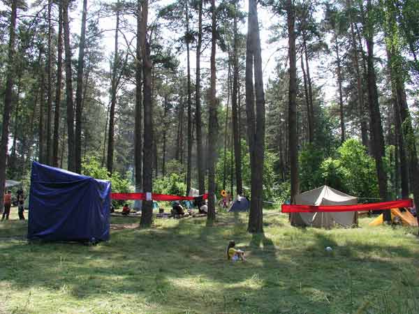 участников. Еда своя, дрова в лесу, биотуалеты вдоль лесного проселка, умываться